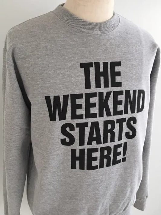 "THE WEEKEND STARTS HERE" Crew Sweat〈Heather Grey〉