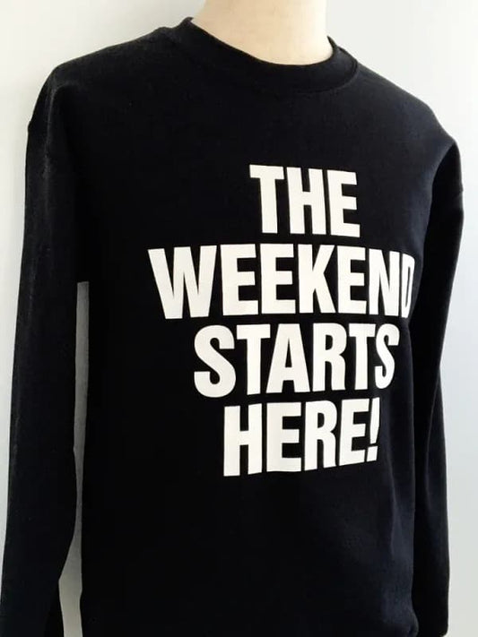 "THE WEEKEND STARTS HERE" Crew Sweat〈Black〉