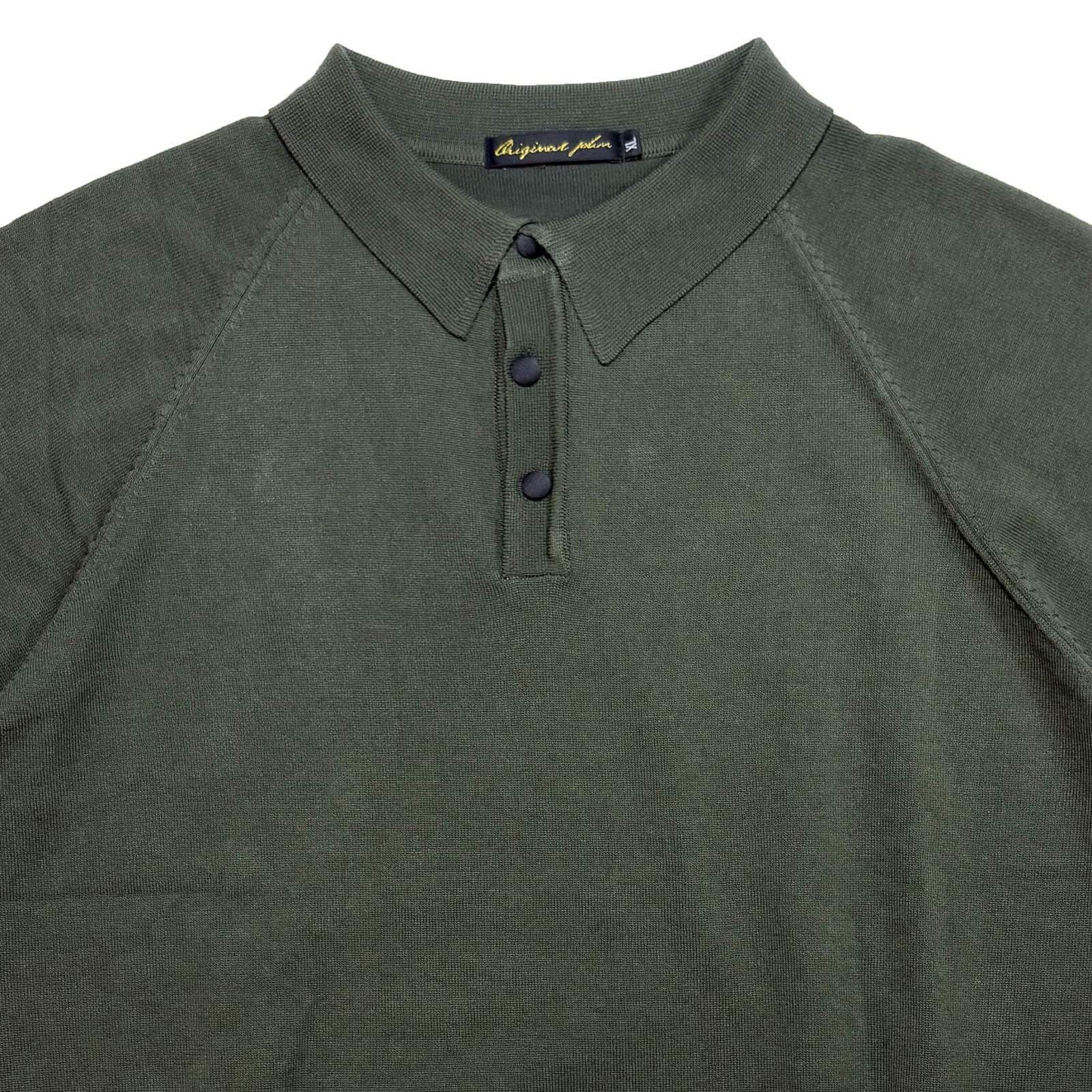 ラグラン仕様の3つボタン半袖ニットポロ。